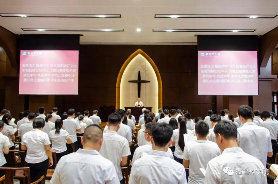 为积极响应中国宗教界和平委员会的倡议,2019年9月3日,福建神学院举行“纪念中国人民抗日战争胜利74周年和平祈祷”活动,全院师生出席参与。