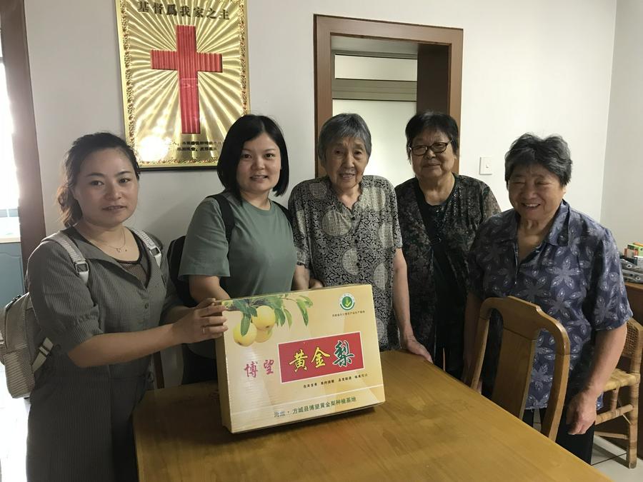 此次探访活动由国际堂郝晓丽牧师和社会事工组娄海娇牧师带队,邀请爱心义工一同参与。此次探访主要针对一些家庭困难、孤寡或空巢老人,每到一户家庭,牧师及同工们均询问老人家的身体和日常生活情况,为老人送上慰问品,并致以节日的诚挚问候。在大家的热情感染下,老人脸上漾起了开心的笑容,道别时仍依依不舍,紧握住探访者的手一再表示感谢。
