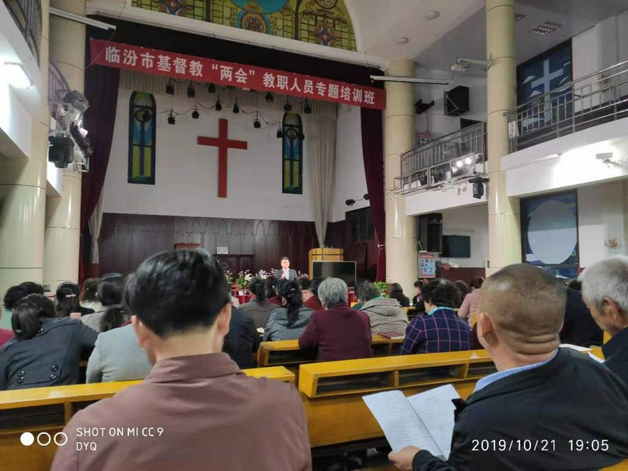 10月22日至25日,山西临汾市基督教“两会”在尧都区基督教会城区堂举办全市基督教教职人员专题培训班,来自各县(市)区基督教会的两会成员、牧区负责人、传道人及预备传道人近200人欢聚圣山,接受属灵生命装备。