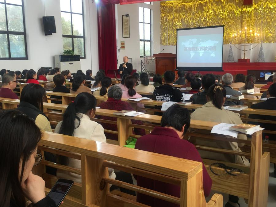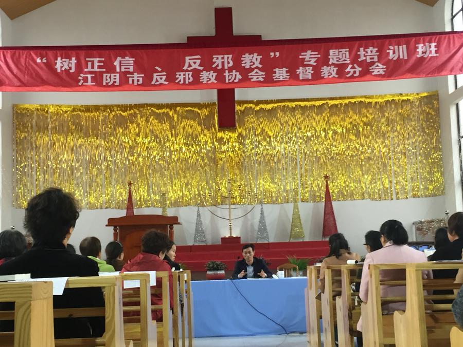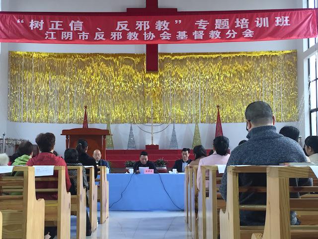 2019年11月23日,江阴市反邪教协会基督教分会在江阴高新区城东基督教堂举办“树正信、反邪教”专题培训班,有92位反邪教志愿者参加了培训。