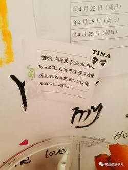 在这位姊妹的小小“城堡”里,可以看得出她是一个热爱生活的人。不大的房间收拾得非常整洁,东西不少但很有秩序。在她的书桌前贴着很多的计划表、便利贴还有许多照片。有一张便利贴吸引住我的眼球,上面写着:“神啊,每早晨你让我得知你的旨意,让我需要你的力量,遇见你让我需要的人和需要我的人,阿们!”这句话给我很大的触动,再想到晚上姊妹跟我们分享的许多事奉的经历,我突然明白,她正是这样行事的,每一天寻求主的旨意,依靠主的力量,去遇见那些需要她和她需要的人!姊妹初来这间教会时,对教会还不熟悉,对一切的事工还处在摸索阶段。她没有可以依靠的人,她只能依靠神。当她如此向神祷告,神带领有需要的人来主动找她,她会尽她所能的去帮助别人。她祈求神把她放在合适的岗位上。初到教会,除了讲道,教会安排她带中老年诗班。她很有这方面的恩赐,因为年轻有活力,给中老年诗班也带去了勃勃生机。