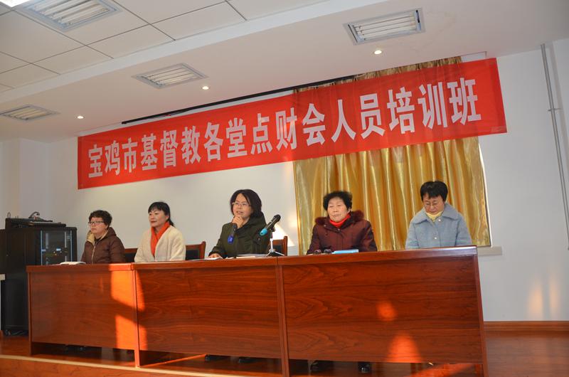 上午9:00,在参加培训人员共同祈祷及李玉兰牧师代祷后,财会人员培训班开班了。首先是宝鸡市基督教协会会长王琼牧师,依次向全体财会人员介绍了台上就座的各位授课老师:市两会财务总监刘序荣、市两会新任会计朱海红、岐山教会会计杨秋侠、曙光教会会计陈桂林。