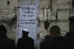 耶路撒冷老城圣殿山是犹太人心中最神圣的地方之一。参加活动的人聚集在圣殿西墙的一侧,上面用希伯来语和中文写着:“犹太人民为中国的平安和战胜困难而祷告”。