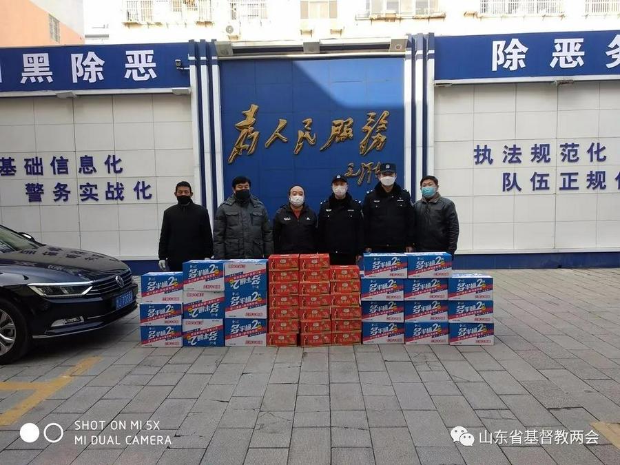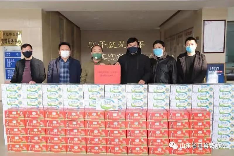 宁阳县基督教两会带头为抗击疫情捐献爱心,并下发了《为防疫工作奉献的倡议书》,全县信徒积极响应,踊跃奉献。2020年2月17日,县基督教两会同工在县委统战部和县民宗局领导的陪同下,对八仙桥办事处、八仙桥派出所的执勤民警与疫情防控志愿者进行了慰问,带去了慰问款10000元,以及价值16500元的牛奶100箱、火腿肠85箱、方便面35箱。