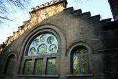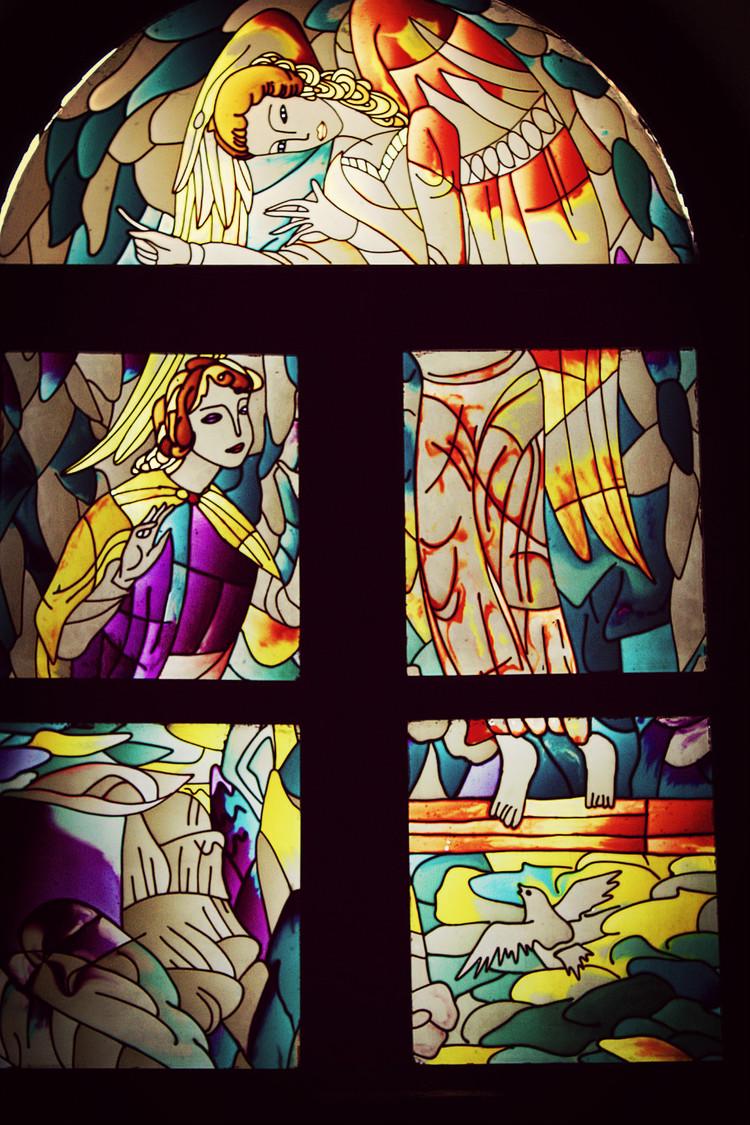 再看崇文门教堂,是当年通过庚子赔款重建的,砖木机构,双层伞型屋顶,正副堂可容纳不止700人,教堂墙有长城垛口,拱形的玻璃花窗。美哉!