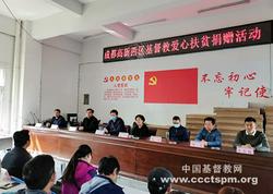 4月15日,在凉山州美姑县佐戈依达乡政府会议室内,成都市高新区基督教三自爱国运动委员会主席赵刚牧师代表高新西区的弟兄姊妹,向该乡精准扶贫工作专项捐赠电视机40台,办公电脑2台。佐戈依达乡相关领导代表受赠单位和家庭讲话,感谢高新区基督教在疫情期间仍然关心扶贫攻坚工作,并承诺用好这批扶贫物资,让基督教的爱心发挥积极作用。凉山州委统战部相关领导和张贤升牧师分别在捐赠活动上讲话,高度肯定了成都高新区基督教热心参与扶贫攻坚工作,积极作为。