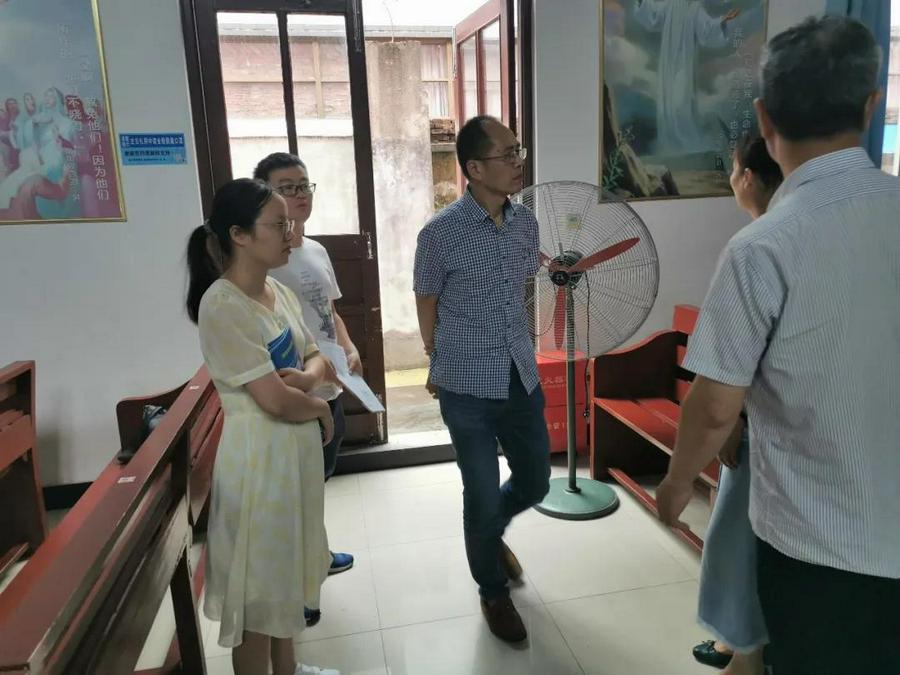 2020年7月17日上午,通州区金沙镇统战部和虹西村一行领导来到金沙基督教堂例行安全检查。