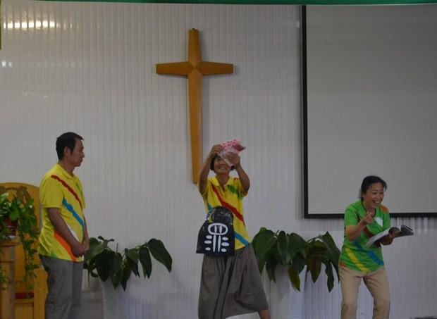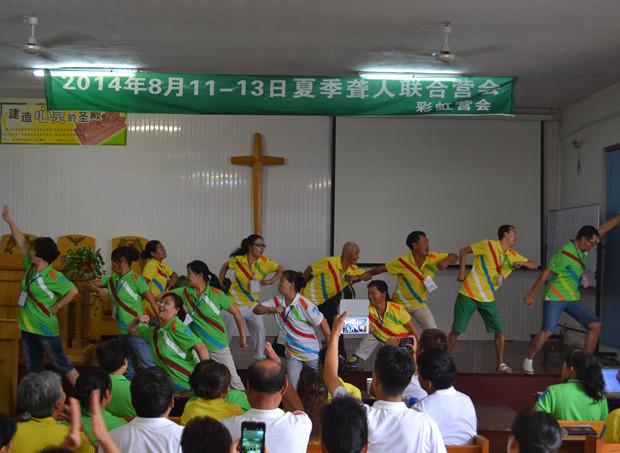 我起初给聋人讲道时,和别人一样,打手语打的很小,聋人很容易看得烦,也听不懂。后来有位同工说,你这样讲,可能聋人接纳不了。健听人的传道人讲道时需要注重仪表、言辞、举止,动作不能过大。为了让聋人能“听”懂,我就放下听人的讲道方式。我们教会的讲桌是在讲台的一边,后来讲台就是我的舞台:该趴下趴下,该坐着就坐着,甚至该跳舞跳舞,全身心去表达。