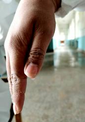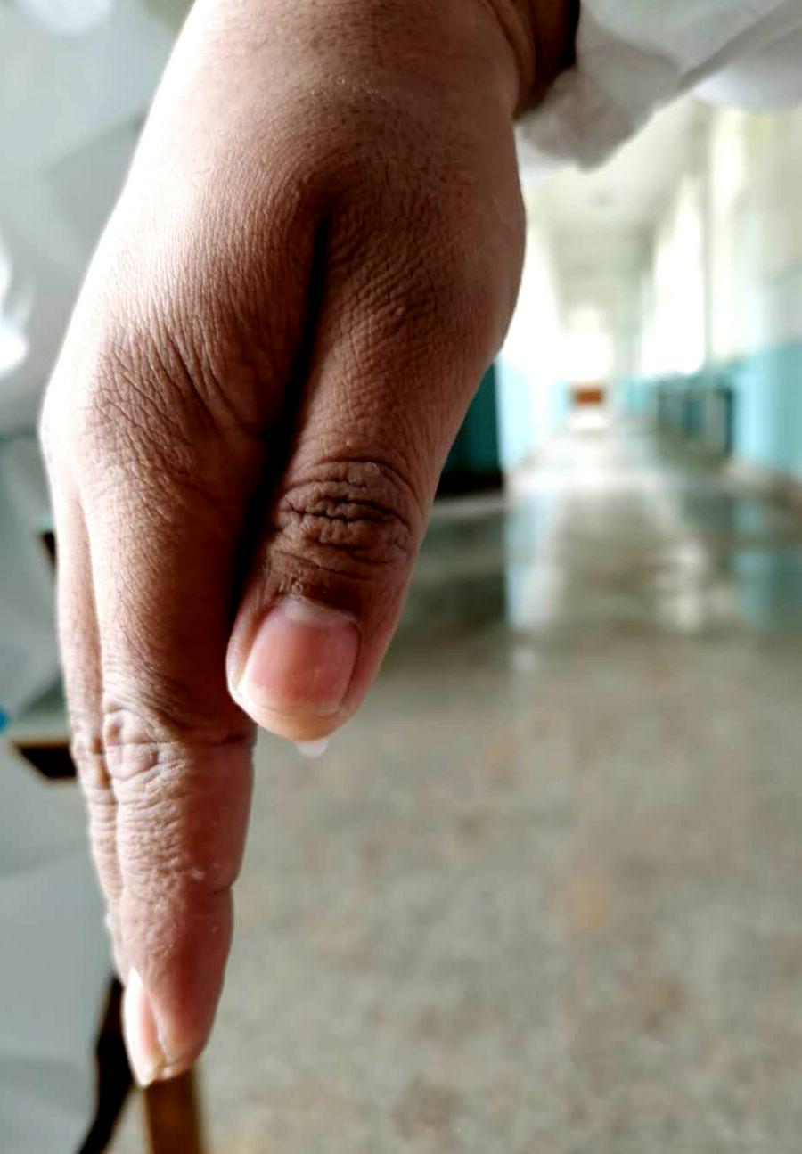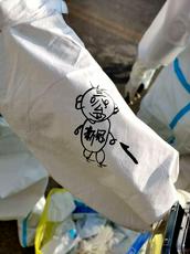 当我看到鞠宛臻发过来的照片,看到大连湾“特有的”黑色蚊子咬肿的手和胳膊、看到因灼伤和浸泡引起脱皮伤害的手、看到防护服帽子中流淌的汗水滴下来、看到他们举起胜利手的集体照,我心疼、我赞叹:这是那双为赞美主、灵巧弹琴的双手吗?这是那些看着文弱、书生意气的教师吗?我在想:这不也是明知山有虎、偏向虎山行的大无畏勇士精神吗?