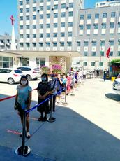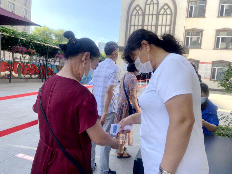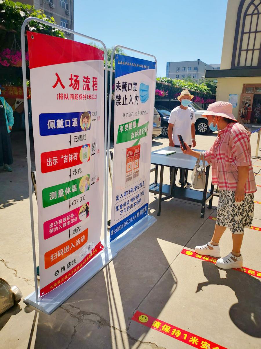 为了这次复会,入堂相关工作已经准备就绪:消毒组早早的来到教堂进行现场消毒通风,排队引导线已经画好,测温组、登记组、扫码组在岗位准备就绪。因为疫情尚未完全解除,为了使恢复聚会的工作顺利开展,教会采取分三场聚会,网上扫码预约、现场检测体温的方式,有效的将信徒分流,避免人员过于密集。