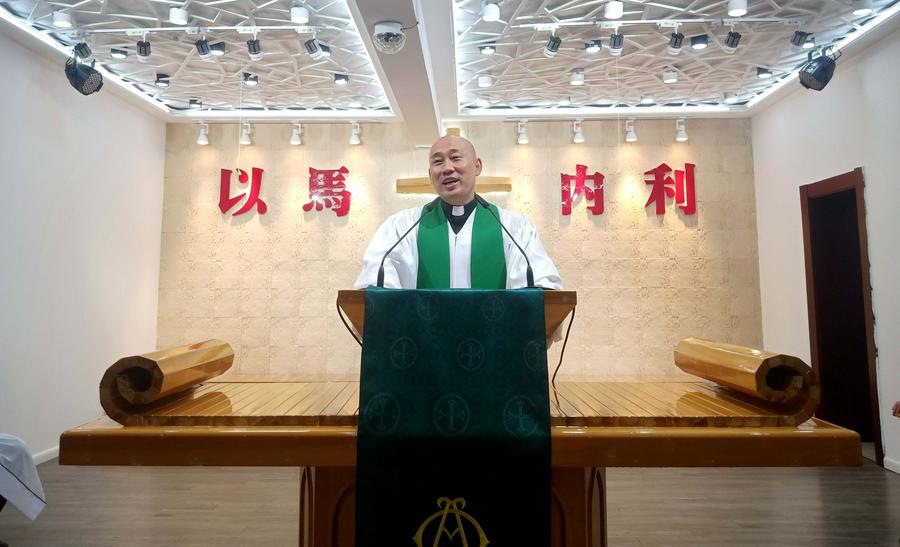 在诗班献诗《荣耀的圣殿》中主礼礼拜开始了。歌声庄严肃穆:“这殿后来的荣耀必大过先前的荣耀。”闫鹏牧师身着圣服上台的第一句话就令大家感动落泪,牧师亲切的询问大家:“你们还好吗?”简单的问候代表了深深的情谊。牧师又说到本文开始的那段感人的话语:“从皑皑白雪的冬天,到欣欣向荣的春天,再到炎炎烈日的夏天,历经204个日日夜夜的等待,我们终于回家了!”