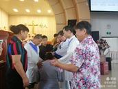 本次受洗圣礼聚会由周红亮牧师主持,并传讲受洗的圣经真理,福音堂诗班献唱,受洗圣礼由周红亮牧师主礼,周宏伟牧师、王思恩长老辅礼。一首受洗归主,加入教会、归向基督、永享团契的诗歌回荡在弟兄姐妹的耳旁。求主使今天立志跟随耶稣,走永生之路的弟兄姐妹们有恩典有力量,能信靠主到底。也愿主赐福每一位归入基督名下的肢体成为上帝的儿女,拥有新的生命,成为新造之人,从今以后为主而活。祈愿尊贵、荣耀的天父,满有公义、仁慈的主,让今天领受洗礼的众弟兄姊妹,透过圣灵、藉着这水洗净他们内心一切的罪和不义,使他们归入基督的死,经历基督的葬,活出基督的爱。