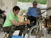 他告诉我们,这处院落是他们去年新建的,之所以看着又新又不新,是因为许多用材是二手的,已经投入使用。进到院中,第一间是两个瘫躺在床的人。与其中一位年轻者交谈,方知他即张俊弟兄,从前的一位武打演员,因故致瘫,来到“迷羊之家”,从“迷羊”到“肥羊”——他瘦极,因瘫痪,肌肉萎缩,但生命丰肥,不但自己每日灵修,还每日写灵修的文章,用嘴叼着笔,在床头手机上点写,成为主内的写手,也是“助手”团队中一只祝福他人的手。