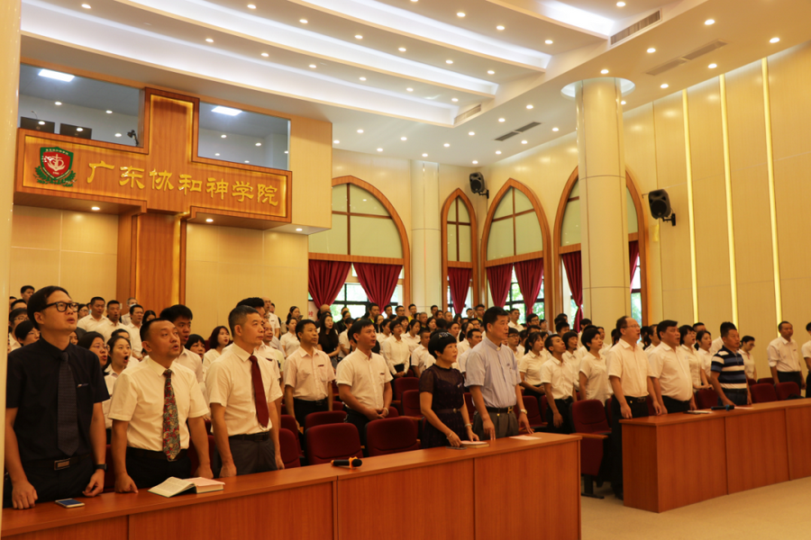 9月1日上午9时, 伴随着雄壮的义勇军进行曲,五星红旗冉冉升起,学院如期举行了新学期升旗仪式暨2020-2021学年开学典礼。全院师生以庄严、喜乐的心情唱响国歌、校歌,迎接开学的到来。广东省民宗委吴成立处长,广东省基督教三自会主席樊宏恩牧师,广东省基督教协会常务副会长雷玉明牧师等领导、牧长应邀出席开学典礼。 许洁平院长藉着提摩太后书第2章21节经文劝勉同学们,务必珍惜光阴,竭力装备,追求真理知识和圣灵的充满,脱离卑贱的行为,预备行各样的善事,更合乎主用,完成神所托付的使命。广东省基督教三自会主席樊宏恩牧师在典礼上讲话,勉励同学们坚定侍奉的心志,持守真道,并在疫情期间继续做好防控常态化工作。