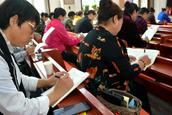 笔者看到培训现场非常安静,大家都在聚精会神的听课、认真地做笔记。由于是半天的培训,所以乡镇基层教会的传道人和同工每天都要往返于新生命堂和自己的所在地,亦是比较辛苦。即使是这样,参加培训的传道人还是不辞辛苦坚持听课。笔者看到有熟悉的传道人身体有病,还是克服困难参加培训,大家的学习热情很高。