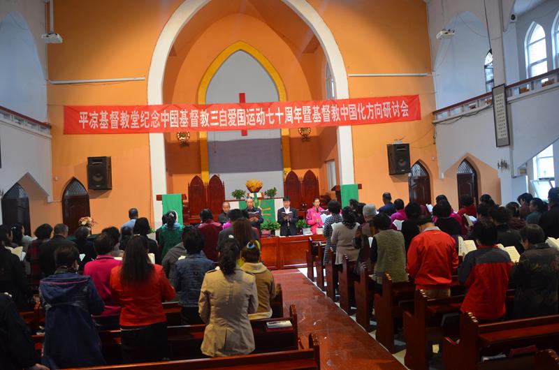 在党的十一届三中全会以后,国家积极落实宗教政策,平凉基督教堂也于1983年12月恢复开放了礼拜聚会,并于1983年12月23日恢复成立了平凉市基督教三自爱国运动委员会。从此以后,平凉基督教走上了一条全面复兴、健康发展的道路。回顾过去,心潮彭拜;展望未来,激情满怀。李牧师在发言的最后感慨的说,“三自运动前的旧中国,教会多一个基督徒,就会少一个中国人;新中国后的三自运动,教会多一个基督徒,就会多一个爱国的好公民”。70年来的事实证明,每逢国家有难,我们基督徒都会积极献上自己的一份爱心。四川汶川、青海玉树、甘南舟曲、甘肃陇南等地发生地震、洪水灾害后,平凉基督教堂都积极伸出了援助之手,多次为灾区人民累计捐款四万五千三百二十二元。这充分说明:70年前的三自爱国运动,使中国基督教走上了独立自主的“自治、自养、自传”办教道路,70年后今天的基督教中国化,更是让中国基督教真正走上了一条与社会主义社会相适应的正确发展道路。