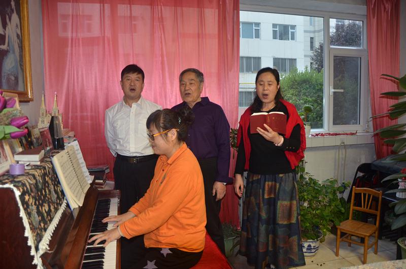 后记:在研讨会结束后吃过晚饭,笔者在李牧师带领下、在田建功长老陪同下,拜访了87岁高龄的陈金标牧师。聆听了陈老一生信主的历程,感受到了陈老前辈自1957年从上海市因支援大西北来到平凉的不易人生,更为他自小受父母影响坚定走在信主这条路上不动摇的坚定信念而感动!老人虽然已高龄,但他耳不聋眼不花,思维灵敏。说起在他担任第一届、第二届平凉市基督教三自爱国运动委员会主席时的侍奉事工见证,头头是道、如数家珍。再谈到他退休后的晚年生活,对五个信主的儿女对他无微不至的关爱和照顾更是赞不绝口!为了展现他老当益壮的当年风采,他当场在小女儿弹奏的钢琴音乐伴奏下,放声高歌了《近主十架歌》《恩有耶稣》《生命路》《有一条路》四首赞美诗歌。陈老唱的气吞山河、豪情满怀,听得我们心潮彭拜、激动万分。是啊,我们中国基督教的大厦,正是靠着无数像陈老这样的前辈支撑和传承,才会有今天的复兴和发展!