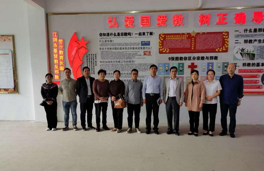 黄忠伟副主席对睢宁县清心堂管理团队的到来表示热烈欢迎,随后黄忠伟副主席带领大家参观了江阴市基督教反邪教教育警示长廊,同时就基督教反邪教的工作做了经验交流。印金标牧师充分肯定并赞扬了江阴基督教反邪教工作,希望两地夯基垒台、同屏共振进一步加强反邪教方面的合作交流。特别在对邪教人员的帮扶转化和反邪教培训宣传方面希望反邪教分会能给与大力的支持,帮助睢宁县清心堂教牧同工和信徒努力提升识邪、防邪、反邪的能力,努力服务于新时代中国特色社会主义建设,为百姓家庭的和睦幸福做贡献。