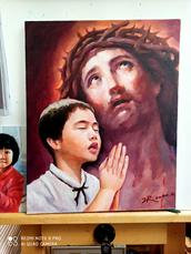 里佐仁弟兄虔诚地信主,每天都在读经、祷告,坚持到教堂礼拜。他积极参与教会组织的各种活动,并为教会绘制了多幅信仰的油画作品。在此基础上,里佐仁弟兄参阅、搜集了大量的国内外基督教的绘画,作为他艺术创作的源泉和参考。所以他所创作的主耶稣基督的各种油画和作品,如五饼二鱼、荣入圣城耶路撒冷、客西马尼的祷告、十字架受难、耶稣基督升天等,栩栩如生,富有信仰的属灵,向人们展示了主基督的大爱和救赎,在辽宁省基督教两会和有的教堂均有展示和收藏。