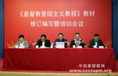 11月4日上午,中国基督教协会副会长、金陵协和神学院常务副院长陈逸鲁牧师主持会议开幕式,他指出《基督教爱国主义教程》(以下简称《教程》)的修订是一项迫切而重要的任务,原有教材具备诸多优点,但随着中国社会日新月异的发展,有关内容需要不断充实和与时俱进。
