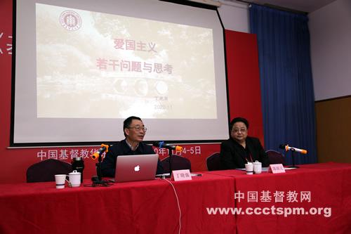 4日下午,华东师范大学马克思主义学院教授、教育部思政课教指委委员丁晓强教授应邀来到华东神学院,为大家做了一场讲座。讲座由中国基督教协会副会长陈田元牧师主持。丁教授根据习近平总书记的讲话精神强调了当前的宗教工作在党和国家工作全局中的重要性,从“宗教与社会主义社会相适应”、“深入把握爱国主义”和“弘扬爱国主义精神”三方面分别循序渐进地阐述了爱国主义的概念、历史、内涵和运用。丁教授的讲座使参会者不仅丰富了知识,也在教学方法上深受启迪。