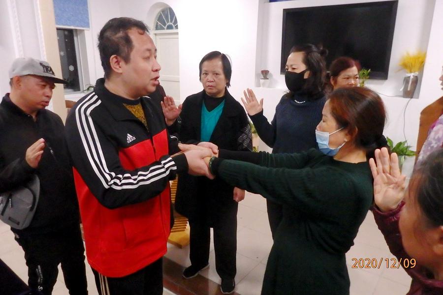 为了讲好一场道,吴鹏下功夫预备,他一个人在屋里要大声地对着空气连续的背诵六、七遍讲章,直到流利了,他才停下。12月9日晚上,我在北海堂再次见到吴鹏在为信徒一对一的祷告,带领大家赞美读经,一站就是两个多小时。我问他:晚上几点休息、几点起床?他告诉我:凌晨一点多睡觉,早晨五、六点钟起床。我说,你这样不行啊,睡眠不足太累了,要注意身体。你的身体不是你个人的。他说累了就祷告,一祷告身上就有力量,就不累了。因为在晚上还有一些信徒打电话和我求助,我就要逐个的耐心去回复……这就是一个双目失明传道人背后的感人故事和辛勤的付出。