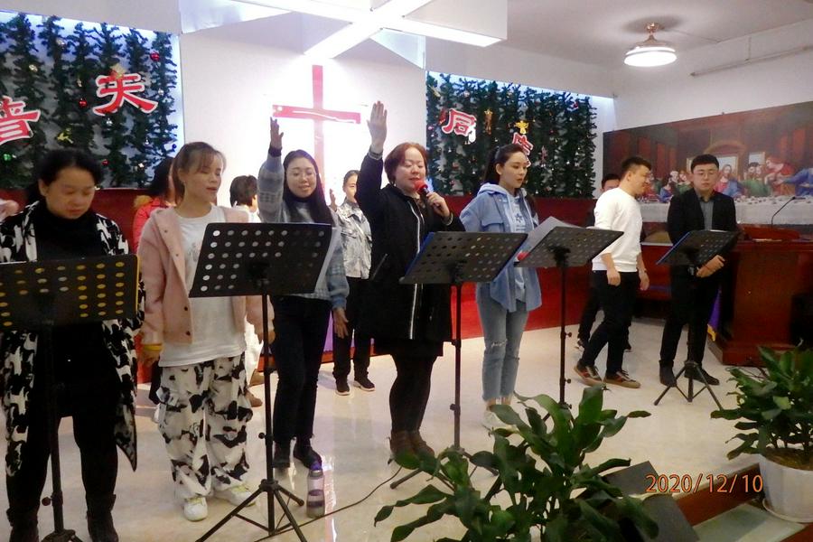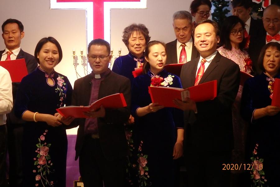 北海堂的夫妻团契有四十多对夫妻。2020年12月10日的晚上七点多钟,我在教堂的三楼看到他们为了迎接圣诞节,正准备彩排。登台彩排之前这些在基督里幸福的夫妻们纷纷按动手机照相机快门,纷纷留下美好的记忆。九点钟,他们来到在主堂的舞台上开始正式彩排。这次他们组织了十八对夫妻,精心编排了合唱、舞蹈。看着穿着中国传统的服装、相亲相爱、载歌载舞的这十八对夫妻,我也为他们祝福,感到了一种夫妻和睦同居的幸福感。在我们的信仰里,夫妻和睦同居是很重要的,因为主耶稣基督也有教导“丈夫也当照样爱妻子,如同爱自己的身子,爱妻子便是爱自己了。”(以弗所书5章28节)“你们作妻子的要顺服自己的丈夫。”(彼得前书3章1节)北海堂遵照圣言圣训,针对家庭夫妻的关系,切实组织了夫妻团契,在这里大家共同学习圣经、祷告、赞美、听道、互动,有了问题互相帮助、互相开导。主任牧师和传道人经常关心这个团契,参与他们的活动,使大家在家庭生活中活出基督的样式,也促进了社区、社会的安定。