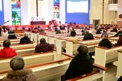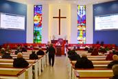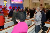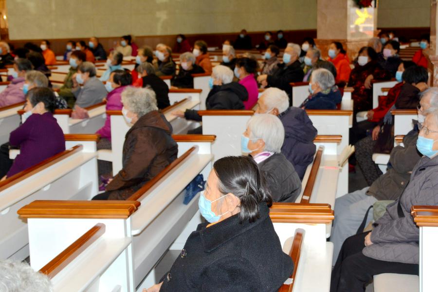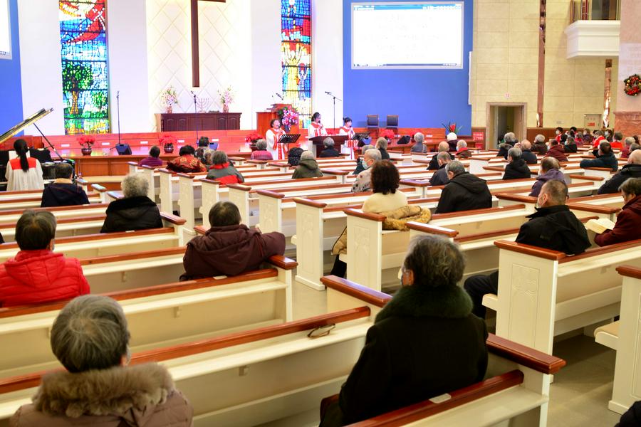 十二月的东北,天气寒冷,但是挡不住众位老弟兄姊妹为主庆生的脚步。在西山堂主堂,按照严格的防疫程序,做到控制聚会人员数量、控制座位间隔的“两控”,堂内温暖如春、欢声笑语,老年弟兄姊妹济济一堂喜迎为他们举行的专场圣诞节聚会。