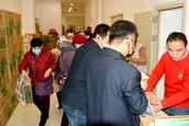 聚会结束后,老年弟兄姊妹有序地排队领取圣诞礼物,感谢主的恩典。