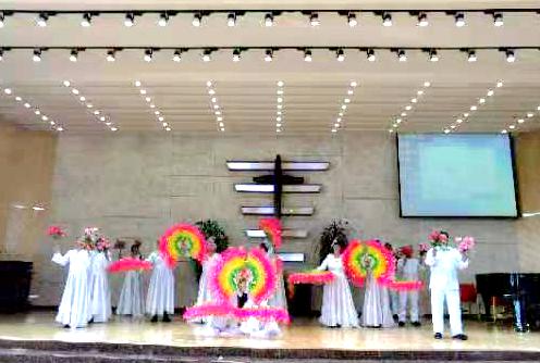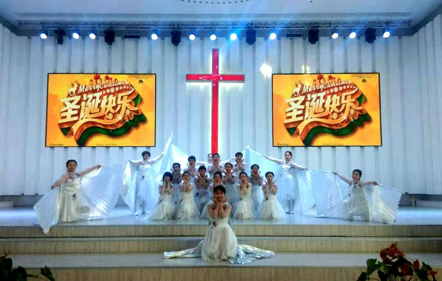 上午七点半到八点,八面城教会会众聚会、读经、祷告、证道,然后即开了庆祝活动。教会各个班组团契,准备的二十多个节目,有圣剧、舞蹈、诗歌、合唱等,分开交替举行。演出十个节目之后人员退场;下一组十个节目继续,这样人数也控制住了。弟兄姊妹预备几个月的节目表演了心意也表达了、会众也非常高兴,政府领导也满意。做到了向主献爱心、信徒节日开心、政府放心。他们就是在平平安安中度过一个特殊情况下的特殊圣诞节。