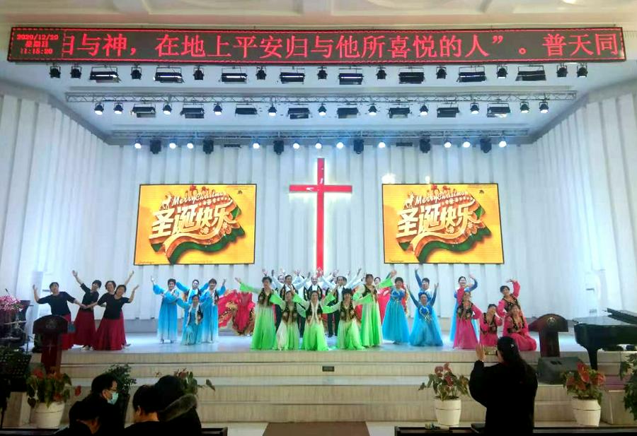 同样在2020年12月20日的主日崇拜后,辽宁营口老边区基督教会,传道人和弟兄姊妹在主堂认认真真的把预备好的节目从头至尾的彩排一遍。喜乐诗班、平安诗班、仁爱团契、教会的乐队、祷告小组等把这个时期精心预备的诗歌舞蹈,器乐演奏等,就如同在平安夜圣诞节一样向我们的主献上,也是作为圣诞节的献祭。也许是彩排也许就是正式演出。对于教会是否能够如期举行圣诞节,只有求告上帝了。“这些节目,就当今天先过圣诞节吧。”语言不多,也如同闫鹏牧师一样的充满对主的爱、充满悲怆!