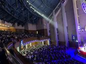 最后一首《声合为一》,灯光打开,漫天繁星倾泻而下,美轮美奂,“使我们同心合意,将荣耀单单归你,让全地赞美声音不停息”,最后,赞美会在牧师的祝祷中结束。
