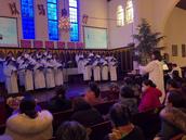 2020年12月25日上午9点,南京市基督教莫愁路堂圣诞崇拜在诗班成员与牧者伴随着《齐来崇拜歌》的缓缓入场中正式开始。会众歌诗、祷告、诗班献唱和牧者带领读经之后,李兰成牧师以“圣诞诞圣爱世人”为主题、引用路加福音2章10-11节和约翰福音1章14-18节及3章16节等处经文,与会众分享了圣诞的信息。