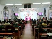 在距离北海市约30公里的合浦县基督教堂,关荣雷教士主持了感恩赞美会,来自北海堂的黄正欣牧师为主证道,北海市基督教两会主席陈考思长老为国家的繁荣昌盛、为教会的复兴、为弟兄姊妹送去神的祝福。常乐镇基督堂,位于北海市约60公里,会众在看似简易的教会主堂安静有序的读经、祷告,观看诗班的赞美。北海市基督教三自爱国运动委员会梁燕副主席主持欢度新年赞美会,常乐堂的罗思琼长老为主证道。