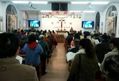 蒙主所赐新的一年,恩典无限福乐绵绵。合浦县教堂、常乐镇教堂披上了节日的盛装,充满喜乐的气氛。这里的信徒们早已知道有客自远方来,和他们一起敬拜赞美神,就早早的来到教堂,迎来了驱车几十公里而来的“大教会”的三个诗班的八十多位弟兄姊妹。家里人见面格外亲,互致问候,彼此祝福在新的一年灵命成长、更加蒙恩、更加进深。