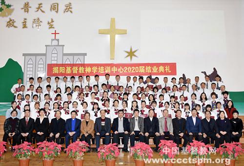 2021年1月16日上午,广东省揭阳市基督教神学培训中心因疫情而延迟的2020届结业典礼,在严格做好各项防控措施的前提下,于揭阳市基督教东山堂举行。本届共有广东协和神学院揭阳神学延伸班、本部神学进修班、神学提高班及艺术班的63位同学结业。揭阳市基督教两会主要负责同工和神学培训中心全体师生等近200人参加了典礼活动。