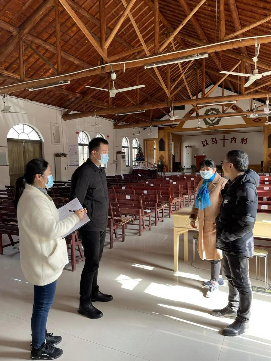 2020年1月25日,江苏南通市通州区基督教三自爱国运动委员会主席邱成牧师带领副主席王峰牧师,常委陆艳姊妹及文员陆雪梅姊妹,金沙基督教堂同工施霞姊妹对通州区各基督教堂点进行疫情期间防控检查,听取关停主日聚集性活动情况汇报,并进行相关指导及疫情期间圣餐领取办法,做好疫情防控工作,落实区委统战部,区宗教局关于全区宗教场所疫情防控的管控和要求。