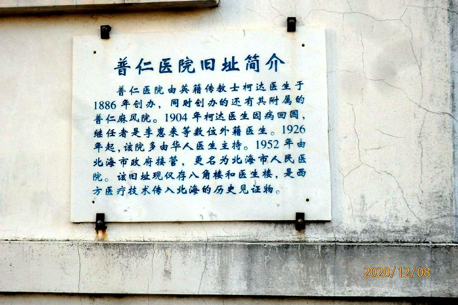 2020年12月上旬,我在广西自治区北海市,去探访北海市有名的全国历史文物:普仁医院和女子贞德学校旧址(现为北海市人民医院)。但是由于疫情期间,防范甚严,未能如愿,只好在外围望一望,拍下了作为全国历史文物的普仁“八角楼”。感谢主!承蒙基督教北海堂张业忠主任牧师馈赠,得到了一本好书:《寻根——北海普仁百年医史》。这是一本记载135年前普仁医院历史的书籍。从客观上记录了上帝在中国光照北海这块地的奇迹、从中可以看出基督教在北海以医传教的历史,既是一本还历史本来面目、讲述中国县市一级最早的西医医院北海普仁医院,也从多方面显示了上帝创造的奇迹和伟大,讴歌了100多年前那些具有仁爱之心的基督徒医护人员治病救人兼传福音,以自己的言行为主做了荣耀的见证。