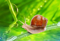 蜗牛看似温儒软弱的,其实平常靠着宽大平坦的腹足匍匐前进,悠悠哉哉地,随地形滑行;当需要跨越鸿沟时,前端的腹足,如变魔术神奇地,可以极力延伸其长度黏附至彼岸,腹足肌肉再以波浪般的起伏收缩,将原本停留在此岸的壳子移送到前端,接着收回已变形成细长条状的腹足后端。