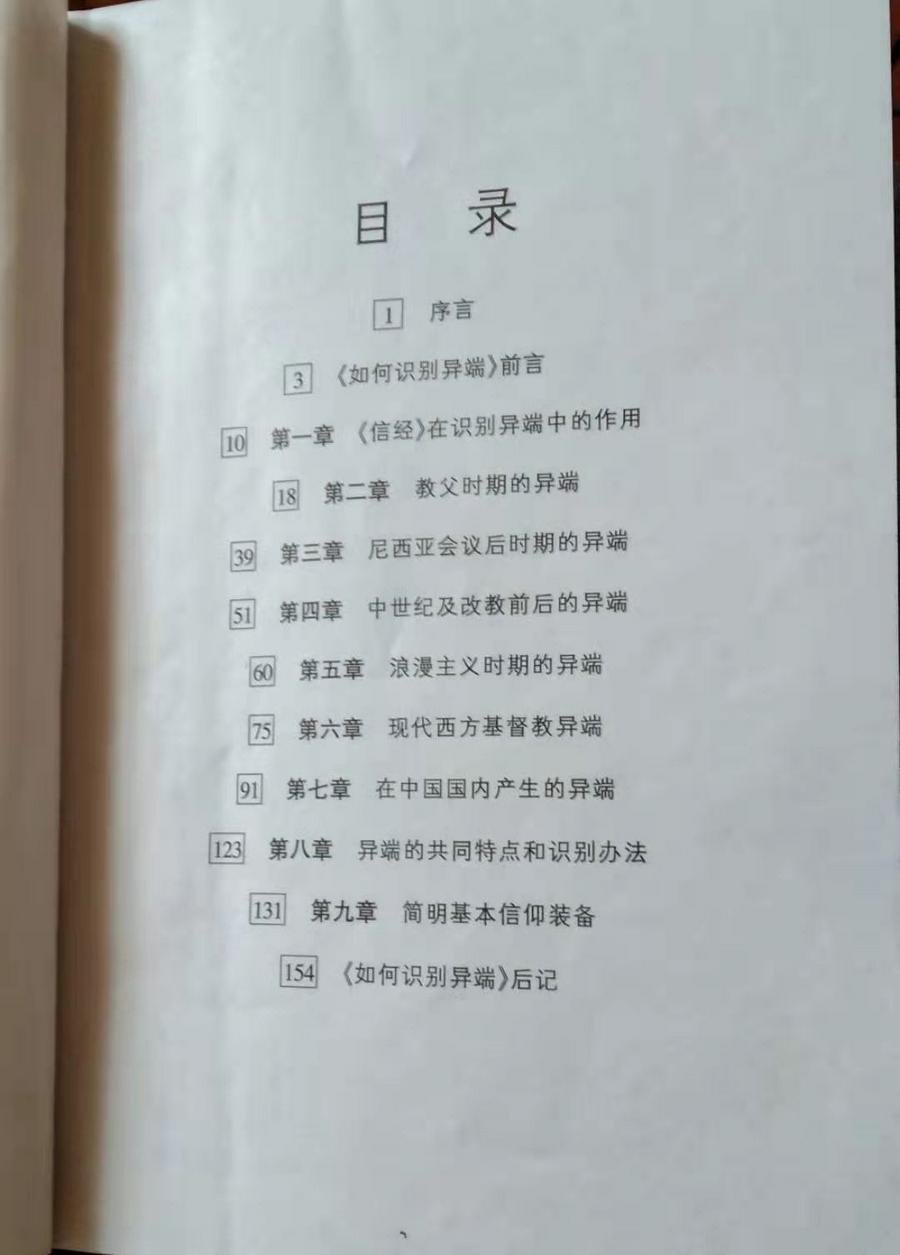 在本书的第八章,作者用了一定的篇幅揭露现代异端的共同特点,主要有九点:第一,异端有一个能力很强的领袖;第二,异端否定“圣经是唯一的权威;第三,异端否定《圣经》所教导的真理;第四,异端宣称拥有“新的启示”;第五,异端自认为自己是“得救”的团体;第六,异端歪曲末世信仰,上演了许多“人类已进入主来的末世”闹剧;第七,异端不择手段勾引人入他们的教;第八,异端强调完全的交托,要信徒舍去所有财富交给所谓的“教会”,控制教徒的言行自由等;第九,异端是独裁、滥用权威的组织机构,对教徒实行恐吓、打击、咒诅等。在这里,作者概括了异端的共同特点,特别是中国基督教教会异端传播的大致手段,告诉了读者识别异端方法,供信徒分辨、分清是非黑白、识破他们的真面目。作者教给信徒识别新产生的异端的方法主要是路易士的“七问法”,比如“你的教训,除了《圣经》以外,是否还有其它启示,或神圣的经典为依据?”“你是否相信耶稣的流血,是赦免人罪的唯一方法?”“你相信耶稣从死里复活吗?”“你是否信靠耶稣基督为你个人的救主和主?”“你是否依靠自己的一些成就,作为立救恩的基础?或你仅单单的信靠上帝的恩典?”等(详见本书128-129页),是比较适用的、有效的识别新异端的有效方法。