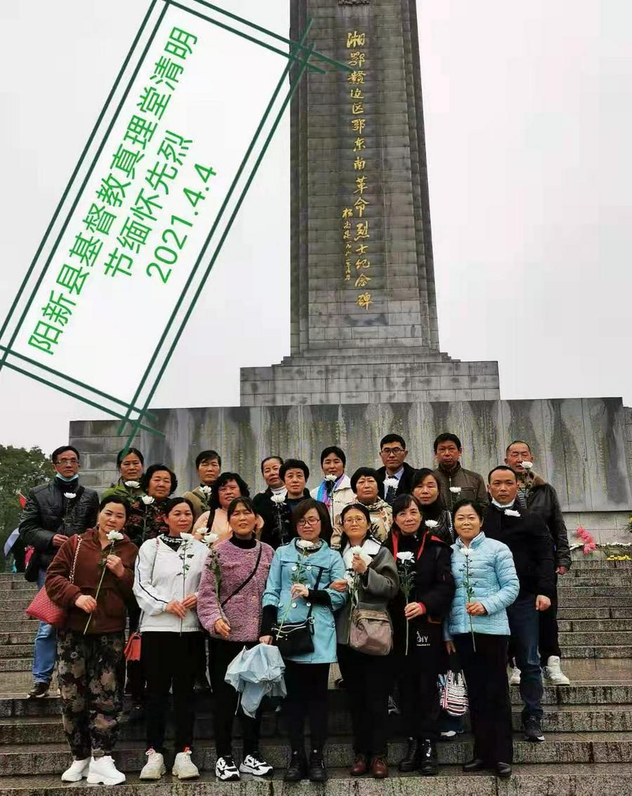 2021年4月4日中午,湖北省阳新县基督教真理堂组织全体同工前往湘鄂赣边区鄂东南革命烈士陵园缅怀革命先烈。