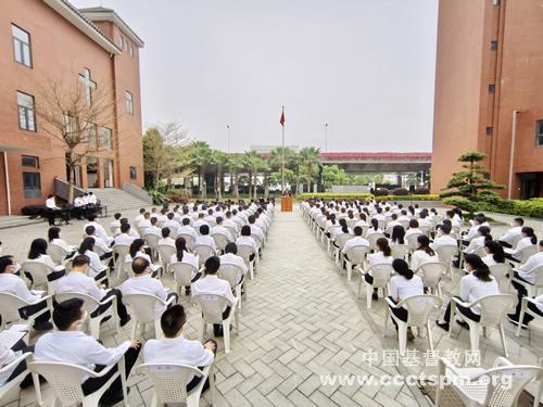 最后,在岳清华牧师的差遣礼及祝福礼中,全体师生在基督的名下,同表效法基督之心,都愿背负十架跟随基督,学主为人牺牲舍己,向着基督的标杆直跑!