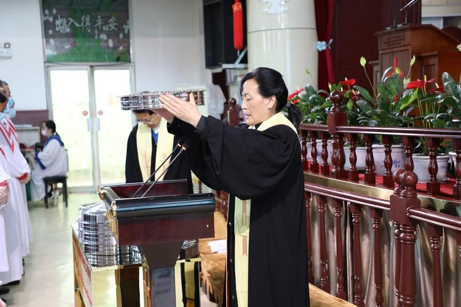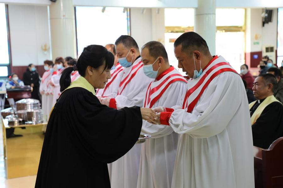 在圣洗礼中,由杨森林牧师和陈丽长老施了点水洗礼。共有37位慕道友经过培训信德考试合格后受洗归主加入教会。之后陈丽长老主礼分领了圣餐,许多人第一次领圣饼圣杯,吃主的肉喝主的血,与主的生命连为一体,禁不住热泪盈眶,众信徒共同见证了这激动人心的时刻,“受洗归主,满心欢喜,加入教会,永享团契——”,赞美的歌声直上云霄,表达了神人交通的美妙。最后在牧师的祝福祷告中,崇拜圆满结束。