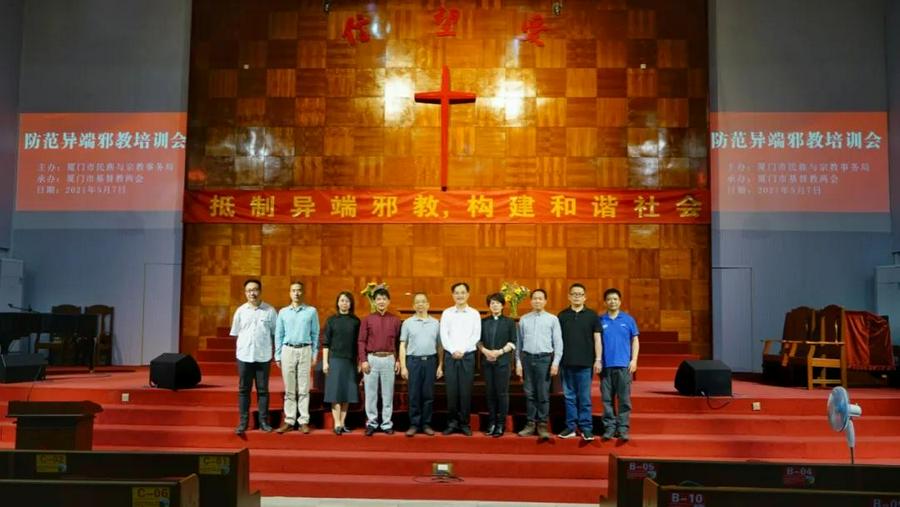 2021年5月7日,由厦门市民族与宗教事务局主办,厦门市基督教两会承办,以“抵制异端邪教构建和谐社会”为主题的防范异端邪教培训会在厦门新区福音堂举行。市民宗局相关处室负责人出席。培训会由市基督教三自爱国运动委员会主席李丽辉牧师主持,特邀莆田市基督教两会常委、莆田市宗教界教育转化专家库专家林光阵牧师主讲,方文良牧师和庄书榜牧师祷告,吴瑞章牧师作结束祝福祷告,全市六区教牧、长执同工、义工骨干约350人参加此次培训会。