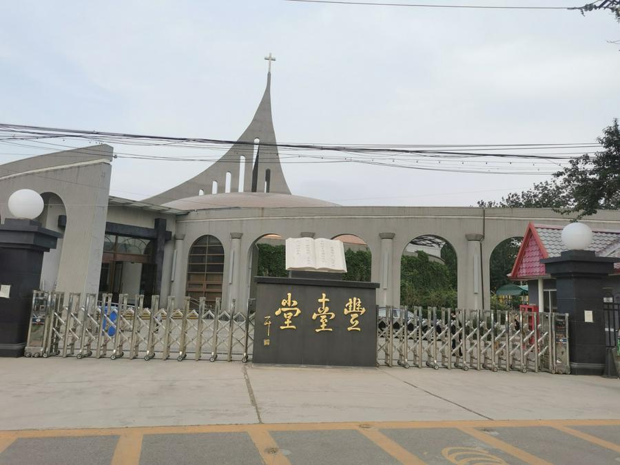 丰台堂的使命宣言是“高擎十架,传扬基督”,墙壁大红字“信、望、爱”;不同角度再看教堂仿佛又像圆号,陆续正有好多人入场,就为来聆听耶稣基督的美妙福音,丰台堂开堂后,组建过中年、青年、女子三个诗班及赞美、圣乐、圣剧、舞蹈等事奉团契,一切感谢主!