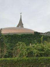 我搭地铁十号线靠近丰台堂了。草桥站地铁口出来问过两路人便看见丰台堂的十字架在远处召唤我,它的外型的确像人形容的“孔雀”,因为独特更体现美好,据说是2004年中科院北京建筑设计研究院设计。