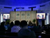我跺了尘土,郑重入堂。教堂一入内便见讲台上屏幕三个大字让我伫望几分钟:“神的话”。