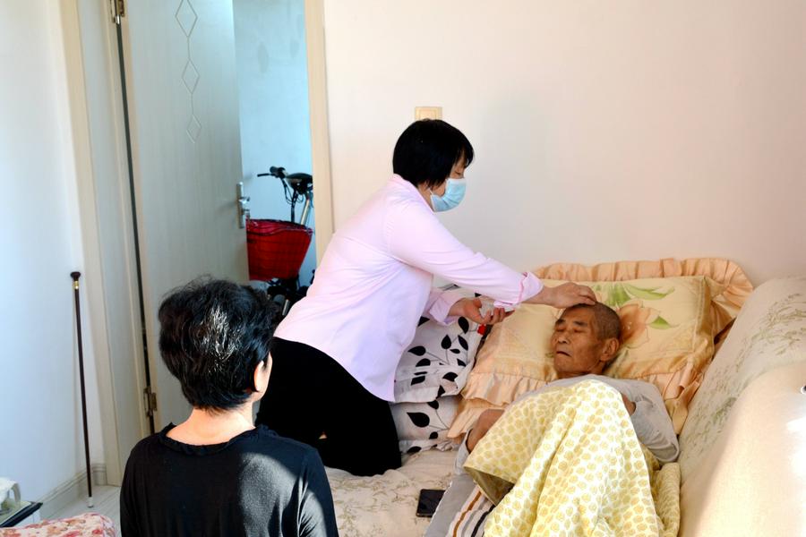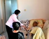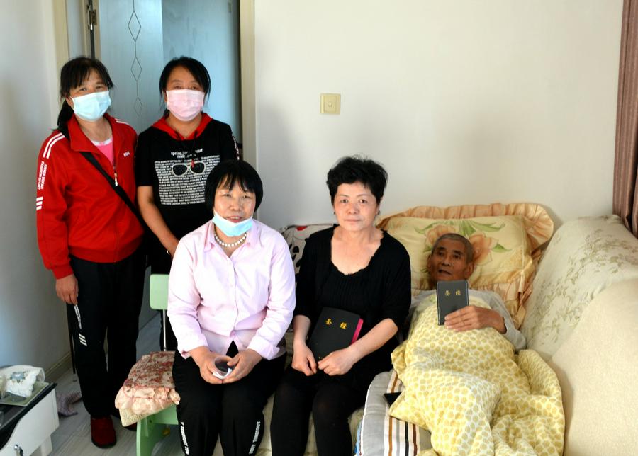 这天下午,高长老在主日聚会证道结束后,不辞辛苦,率教会弟兄姊妹一行四人带着慰问品驱车来到了袁弟兄所居住的小区。当我们来到弟兄的家里的时候,看到他消瘦的身体躺在沙发上,行动不是那么方便了。但是他今天的意识非常清醒,而且回答问题时语言也非常流畅,和正常人没有什么区别。高长老在慰问、咨询了他的病情之后,和他们夫妻进行了交通,讲解了信仰基督的意义,问他们是否愿意接受主耶稣基督。他们夫妻二人表示愿意,也在长老的面前向主认罪悔改。之后长老带领同工们,为他们夫妻祷告、高歌赞美。然后高长老奉圣父、圣子、圣灵的名分别为他们夫妻施洗,并且赠送了《圣经》。