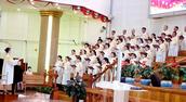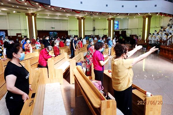 会众一同高唱《这一生最美的祝福》,并以掌声欢迎她们归来。