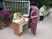 在教会大门口,北片区的姊妹们分站两旁,在欢迎着每一位来宾。见有客来,她们一边说着“耶稣爱你,祝你父亲节快乐!”的话语,一边为你测量体温、登记个人信息。